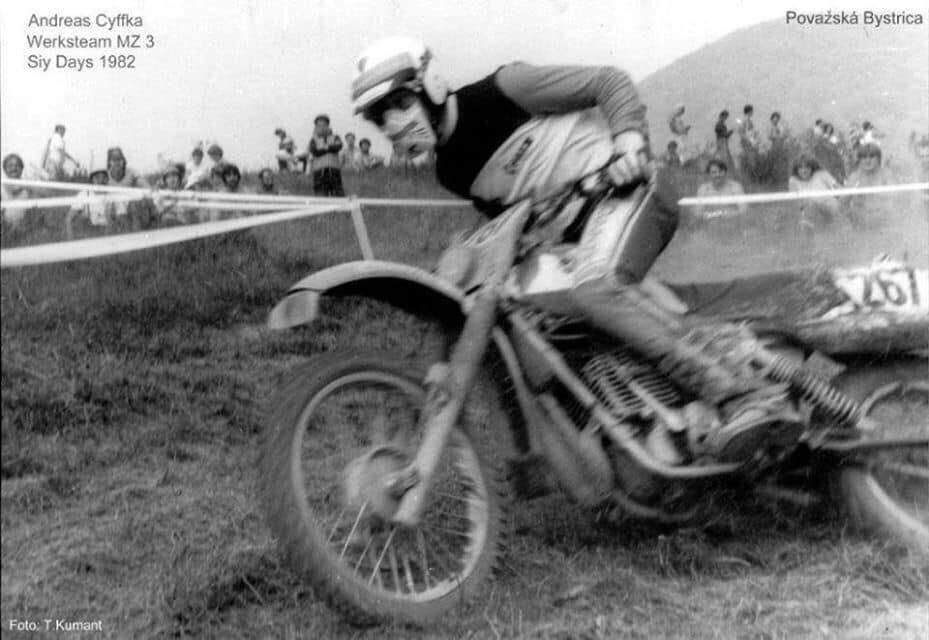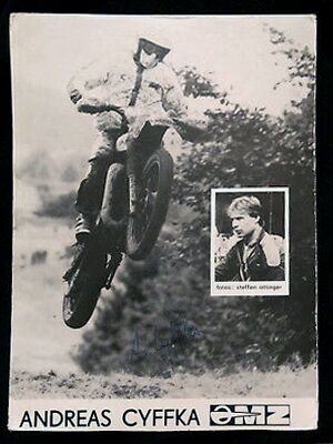 Andreas Cyffka begann seine sportliche Laufbahn 1980 im Motorradclub MZ Zschopau. In den folgenden 2 Jahren arbeitete er sich stetig nach oben und wurde in das Werksteam des VEB Motorradwerk Zschopau aufgenommen und bestritt im selben Jahr seine erste Six Days Enduro im tschechoslowakischen Považská Bystrica als Mitglied einer Clubmannschaft. Im Jahr 1983 bestritt er die Six Days Enduro im walisischen Builth Wells als Mitglied der Silbervasenmannschaft der DDR, die er mit den Teamkameraden Reinhard Klädtke, Bernd Lämmel und Uwe Weber auf dem 7. Gesamtrang beendete. Bereits im folgenden Jahr konnte er seinen ersten großen Erfolg verbuchen: Mit der Mannschaft um Reinhard Klädtke, Jens Thalmann und Bernd Lämmel siegte er im Wettbewerb um die Silbervase bei der 59. Internationalen Sechstagefahrt im niederländischen Assen. Diesen Sieg konnte er im Folgejahr, nun als FIM Junior World Trophy bezeichnet, bei der 60. Internationalen Sechstagefahrt im spanischen La Molina wiederholen, hier mit den Mannschaftskameraden Mike Heydenreich, Jens Grüner und Udo Grellmann. 1986 im italienischen San Pellegrino wurde er in diesem Mannschaftswettbewerb in der gleichen Besetzung wie 1985 Zweiter. Bei der für die DDR-Sportler überaus erfolgreichen 62. Internationalen Sechstagefahrt 1987 im polnischen Jelenia Gora führte er als Mannschaftskapitän die Clubmannschaft des ADMV (Allgemeiner Deutscher Motorsport Verband) mit den Mannschaftskameraden Mike Sydow und Jens Fabig mit deutlichem Vorsprung zum Gesamtsieg. Im Folgejahr war er zum ersten und einzigen Mal Fahrer der World-Trophy-Mannschaft der DDR im französischen Mende. Zusammen mit Thomas Bieberbach, Reinhard Klädtke, Uwe Weber, Harald Sturm und Jens Scheffler gelang dem Team lediglich der 16. Platz in der Gesamtwertung unter 19 teilnehmenden Nationen. Grund dafür waren die Ausfälle von 2 Teamkollegen aufgrund von technischen Defekten.