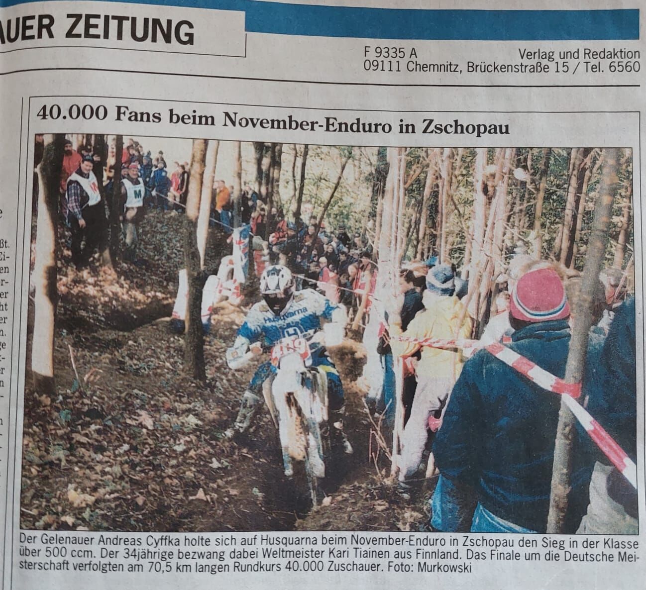 1990 wechselte Andreas von MZ zu Husqvarna. Bereits im folgenden Jahr errang er seinen größten Einzelerfolg. Bei „Rund um die MZ-Stadt Zschopau“, dem seinerzeit ersten Lauf zur neu eingeführten Enduro-Weltmeisterschaft, gelang ihm am ersten Tag vor heimischem Publikum der Sieg in der Klasse bis 500 cm³ Viertakt. Am Folgetag wurde er Zweiter und erzielte in der Wertung beider Tage den Sieg.